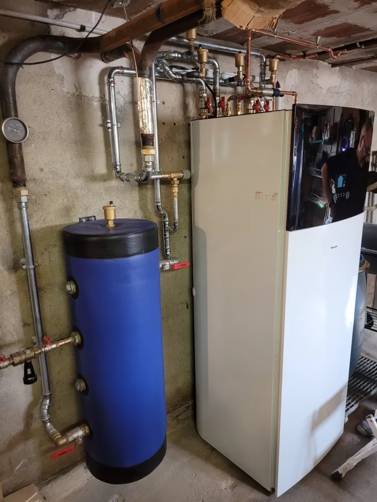 Votre chauffagiste à Abergement La Ronce, a réalisé le démontage d'une chaudière au alimenté au fioul par une pompe à chaleur air eau haute température de la marque Daikin.